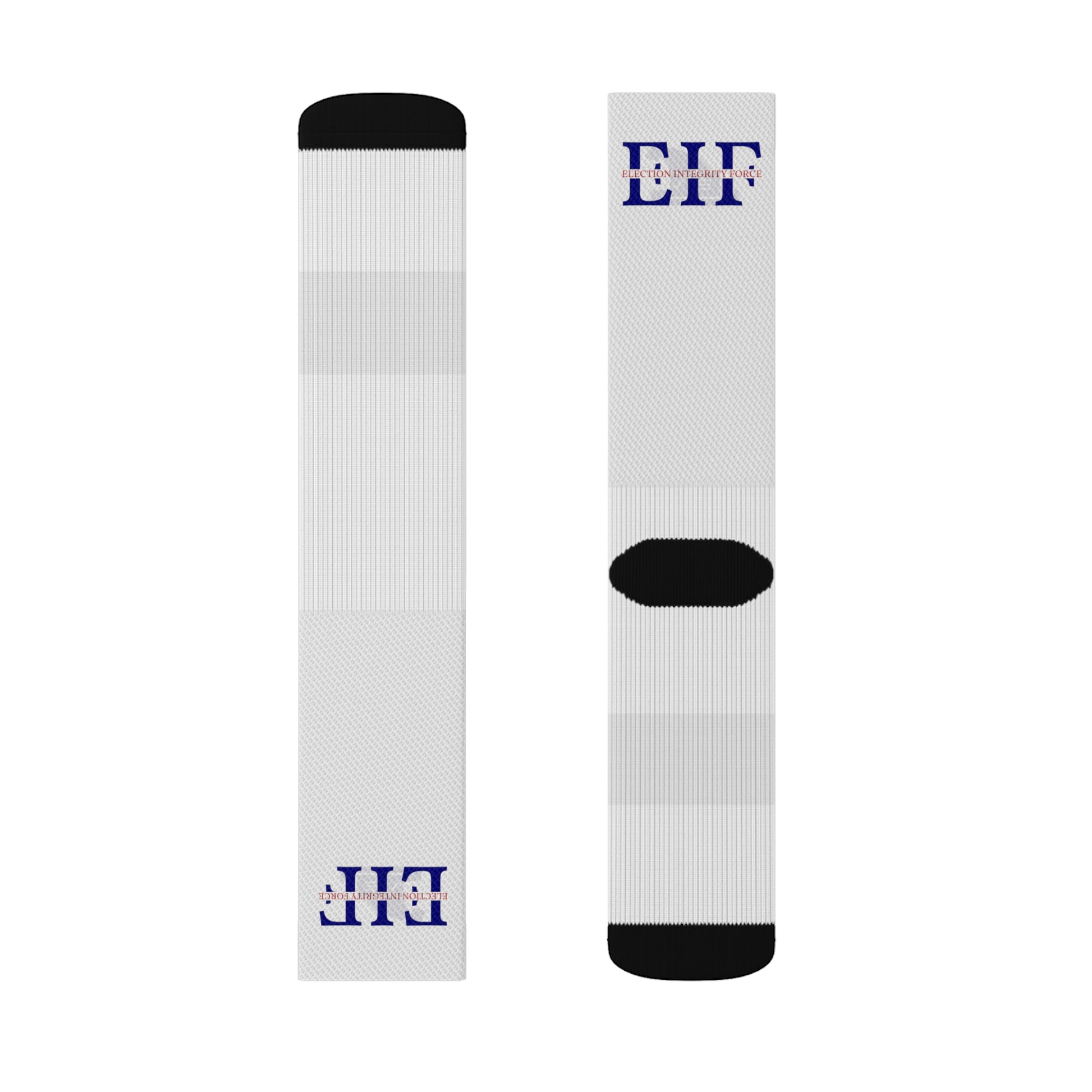 Introducing the Election Integrity Force Socks, the perfect blend of high-quality construction and unique style. Designed for those who move with purpose and passion, these socks are more than just a piece of clothing; they're a statement of support for transparency and integrity, all while ensuring your utmost comfort.